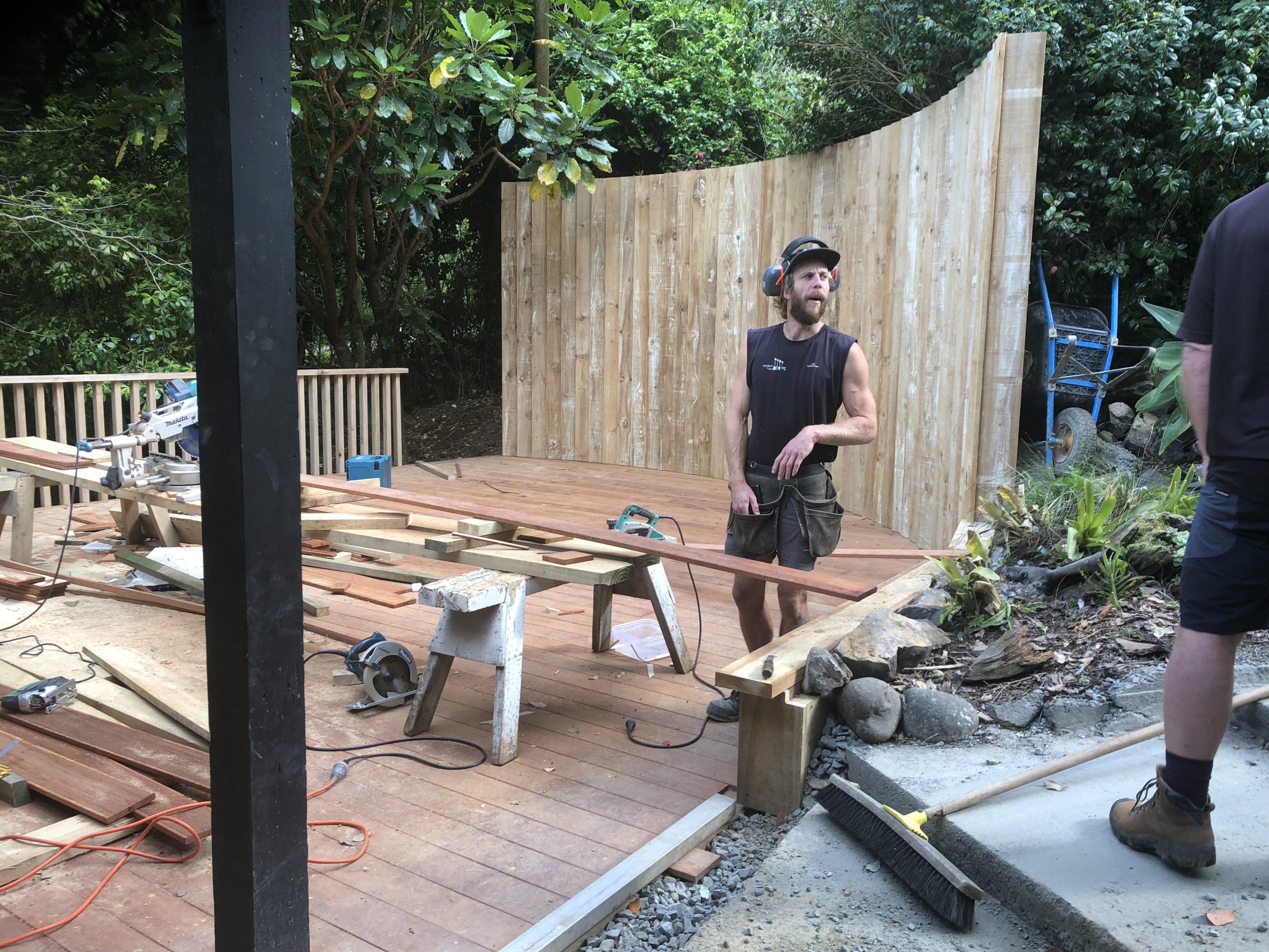 In this situation a large timber deck was proposed starting at the edge of the house, expanding out in order to utilise the uneven, sloped section. Steps off the edge of the deck allowed the to client to retain easy access to the garden below.