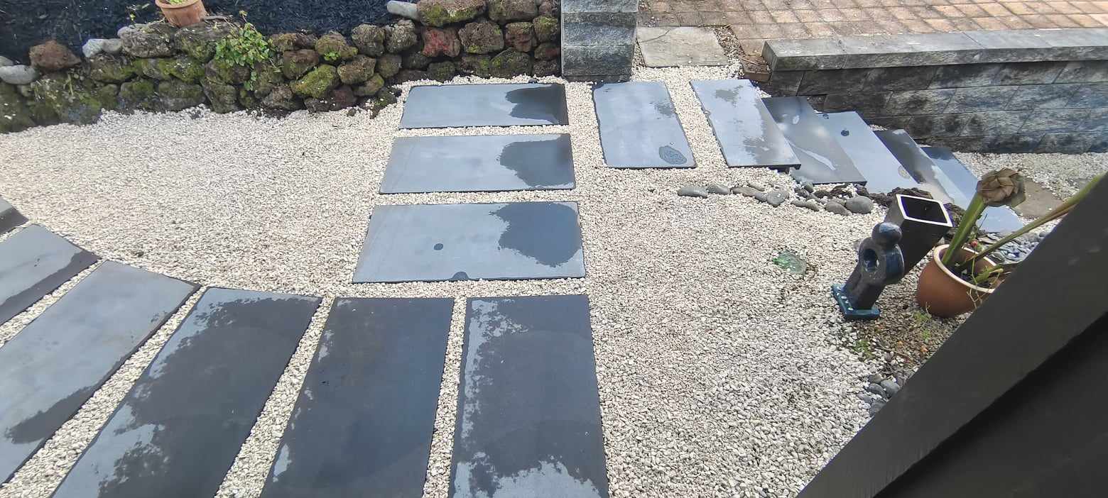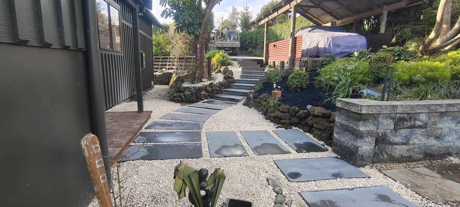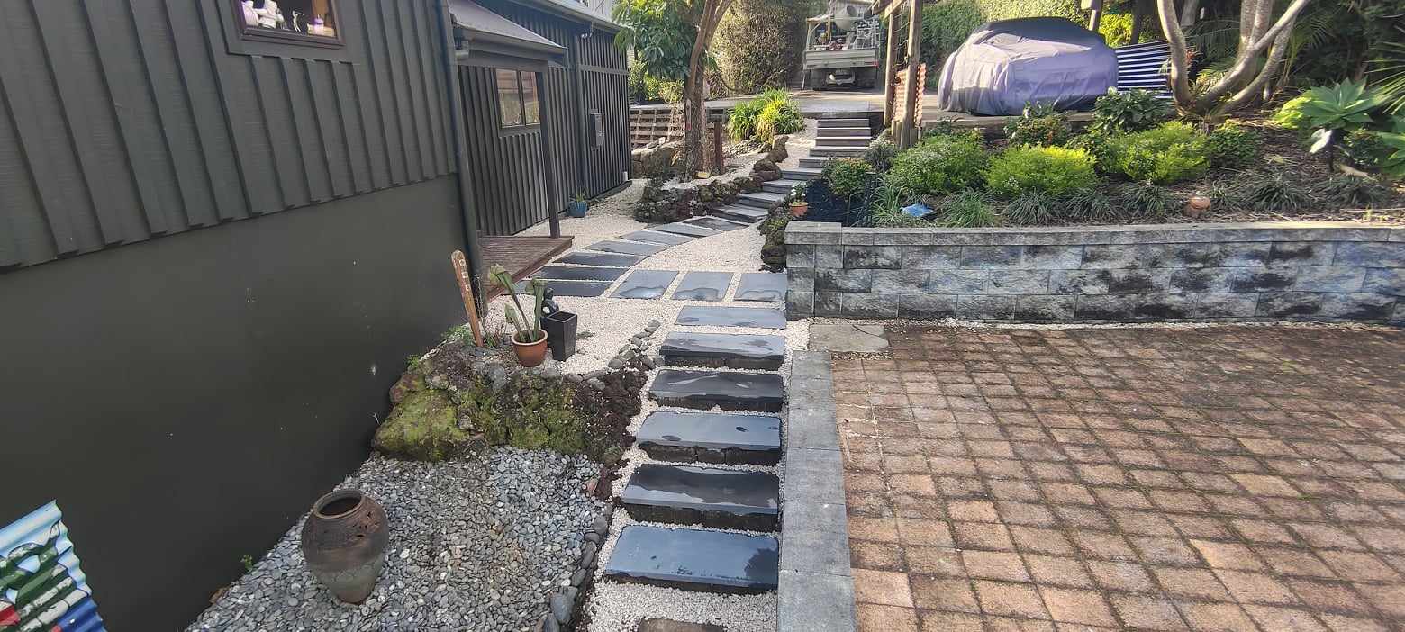 Working on a sloping section these features are very important in creating a easily asccessible and functional space. Both improving the entrance to the house and also providing clear access to other areas on the property.