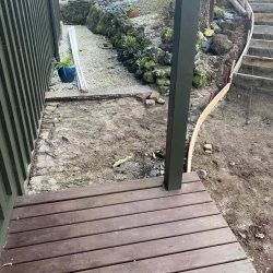 The existing brick stairs and landing had been laid many years prior. Over time the clay base had moved changing the ground levels causing the bricks and associated drainage to become unaligned.