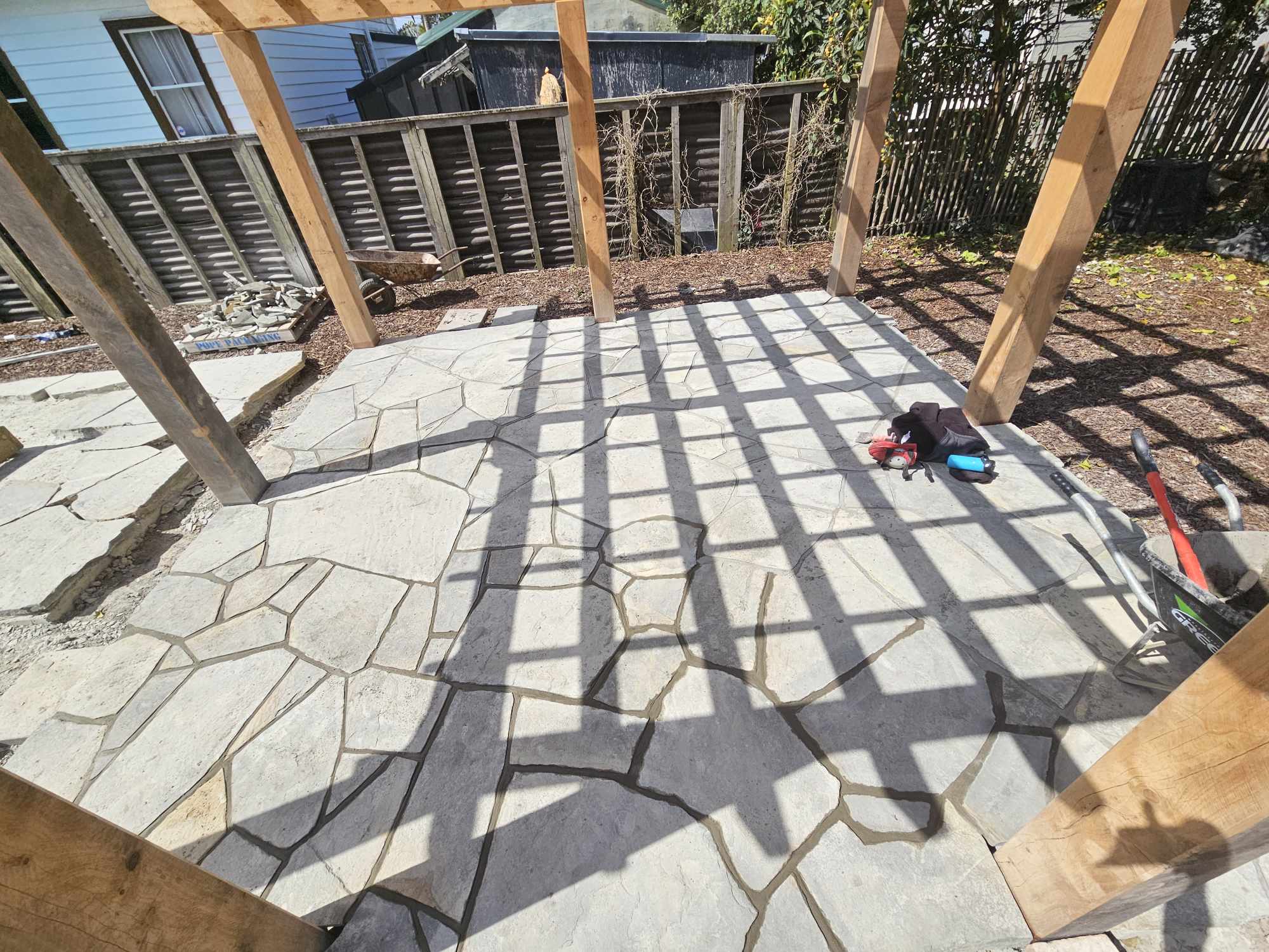 There are two ways Plantpro installs crazy paving, set on a sand base or fixed to a concrete mortar base.