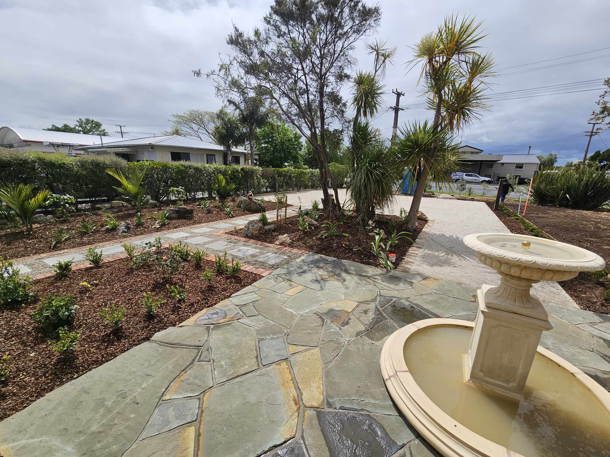 If you are after a more rustic finish laying Paradise Stone directly on a sand base and edging with pebbles or sand is a good option. This style melds well with pebble or pumice pathways in a garden setting.