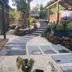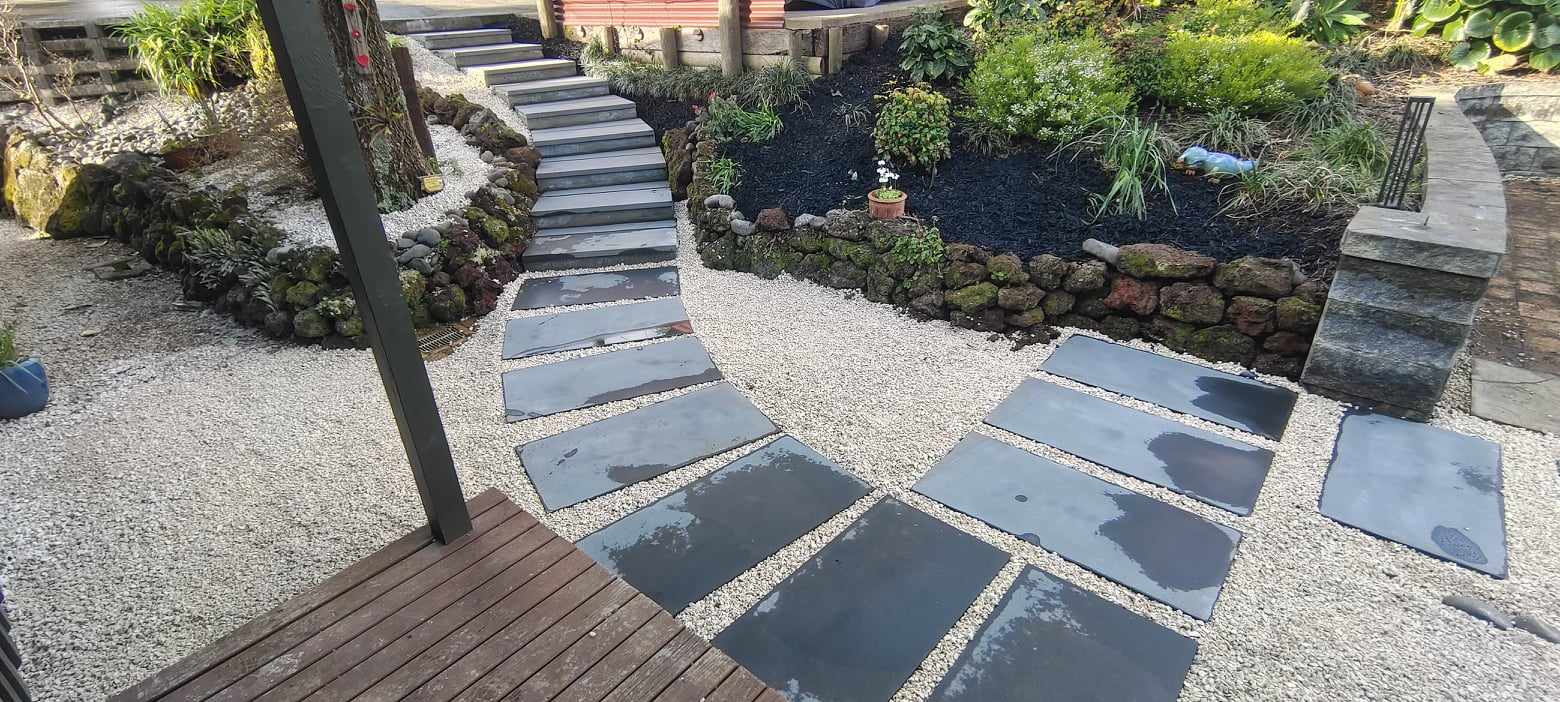 If you are looking for something out of the box, we also lay Paradise stone “Random Crazy Paving.” This beautiful oceanic schist is unique, no piece is the same, which means each project has its own one of a kind finish. We source our paradise stone from local suppliers Paradise Quarry in Portland.